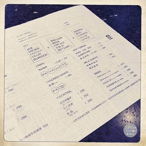menu 有各種口味的漢堡,搭配薯條飲料可以折價30元