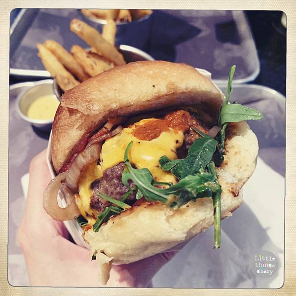 麵包的部分塗上奶油煎烤,可惜那麵包本身口感不是我喜歡的,但整體來說這漢堡很專業