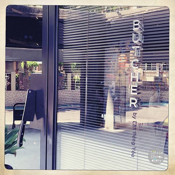 進門前先拍一下這台北市最紅的菜刀,靈感來自Butcher的中文屠夫,配把刀在門上超合理