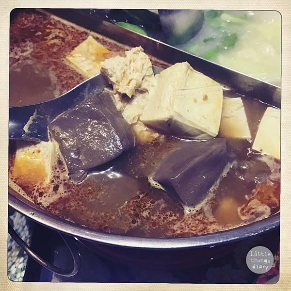 麻辣鍋裡頭有2種豆腐和鴨血,凍豆腐和板豆腐不到超級入味,但是口感還算不錯