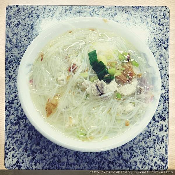 旗魚米粉 滿滿的米粉搭配旗魚熬煮的清湯,還附上一顆魚丸,算是配料豐富的