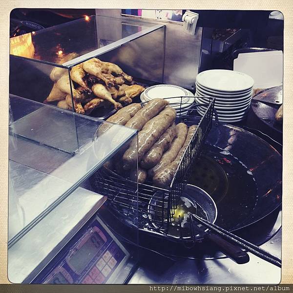 米腸的腸衣是豬大腸,裡頭的糯米加了香料,口感較清淡搭配烤香腸剛剛好