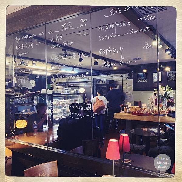 這裡的麵包除了可以買回家之外還有提供內用,內用需要搭配飲品當低消,飲品menu都寫在鏡子上